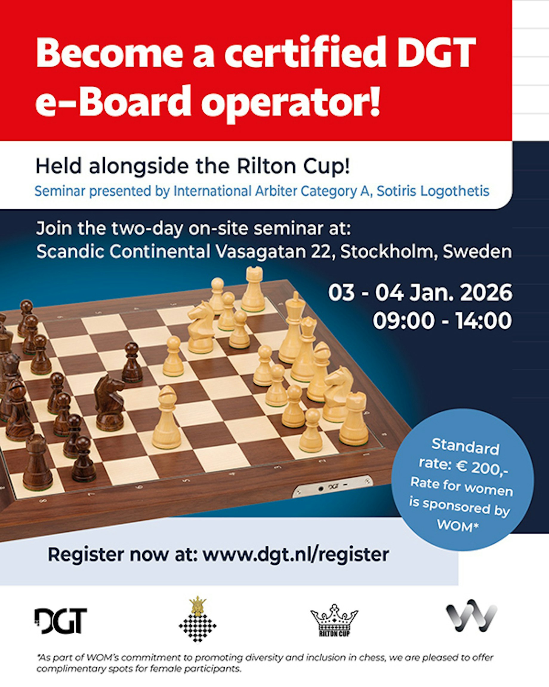 *As part of WOM's commitment to promoting diversity and inclusion in chess, we are pleased to offer complimentary spots for female participants.