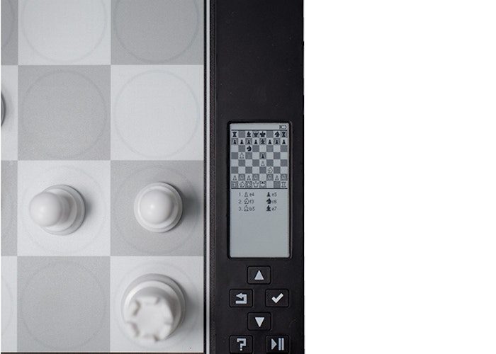 The board has an e-paper display to change settings, to view the game notation or see an image of the board, to show hints or to see the computer evaluation of the position. The screen has a soft contrast that is pleasant to the eye and can be viewed well from all directions and under any light.