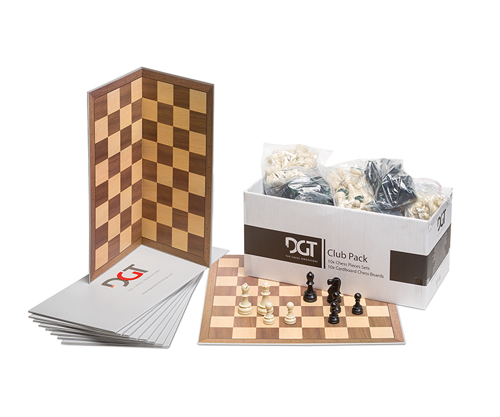 The DGT Club Pack is ideal for your chess club. It contains 10 complete sets of plastic chess pieces with 10 chess boards of dense cardboard in one single affordable pack. Increase the enjoyment of all players at your chess club by using these high quality sets.