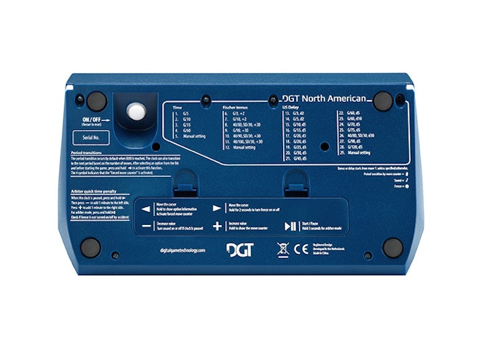 The DGT North American is a one of the bestselling chess clocks in the world. It covers all popular timing systems and has 27 pre-programmed timing options, as well as manual settings. It is tailored specifically for tournament play in North America. With a variety of new and improved delay options, it will continue to be the clock of choice for both players and tournament organizers.