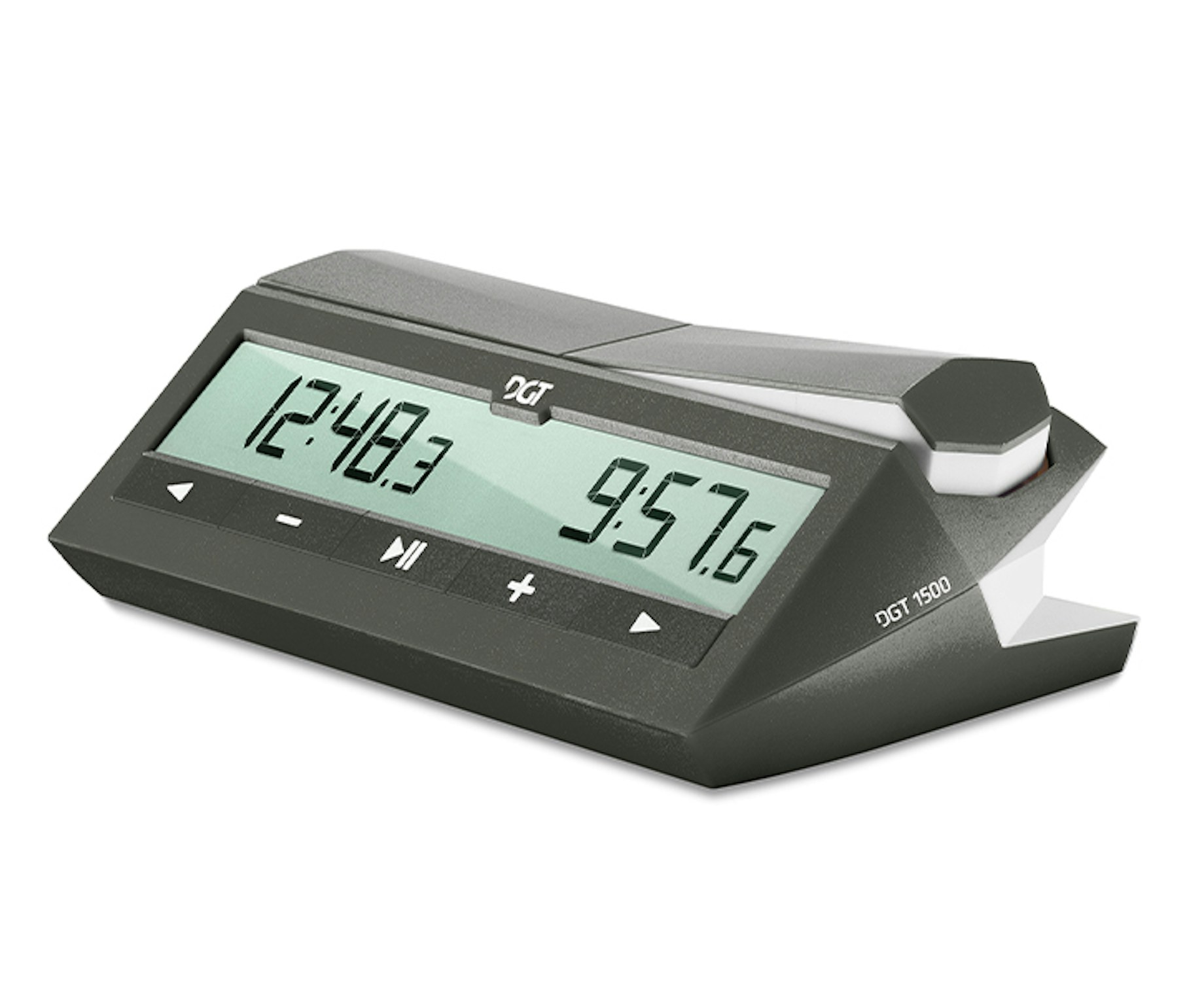The DGT1500's compact size and ergonomic design make it perfect for players on the go. It fits easily into any game setup, offering convenience without losing functionality. The display uses a special DGT font, making the numbers clear and easy to read while adding a stylish touch. Its crystal-clear display ensures you can always see the time clearly, even in intense matches, so you can focus on your game without distractions.