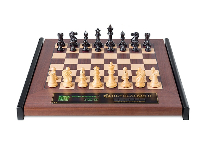 Designed for your ultimate chess playing experience Revelation is the perfect combination of a luxurious wooden chess board and integrated chess computer system.