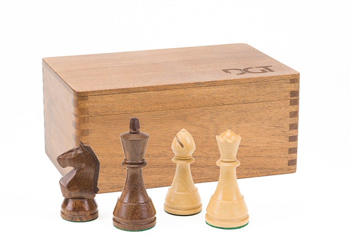 Keep your chess pieces safe, organized, and stored with the DGT Wooden Box for Chess Pieces.