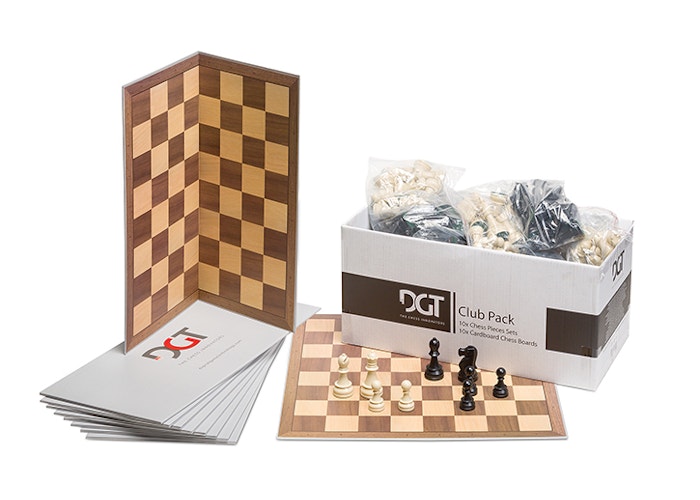 The DGT Club Pack is ideal for your chess club. It contains 10 complete sets of plastic chess pieces with 10 chess boards of dense cardboard in one single affordable pack. Increase the enjoyment of all players at your chess club by using these high quality sets.